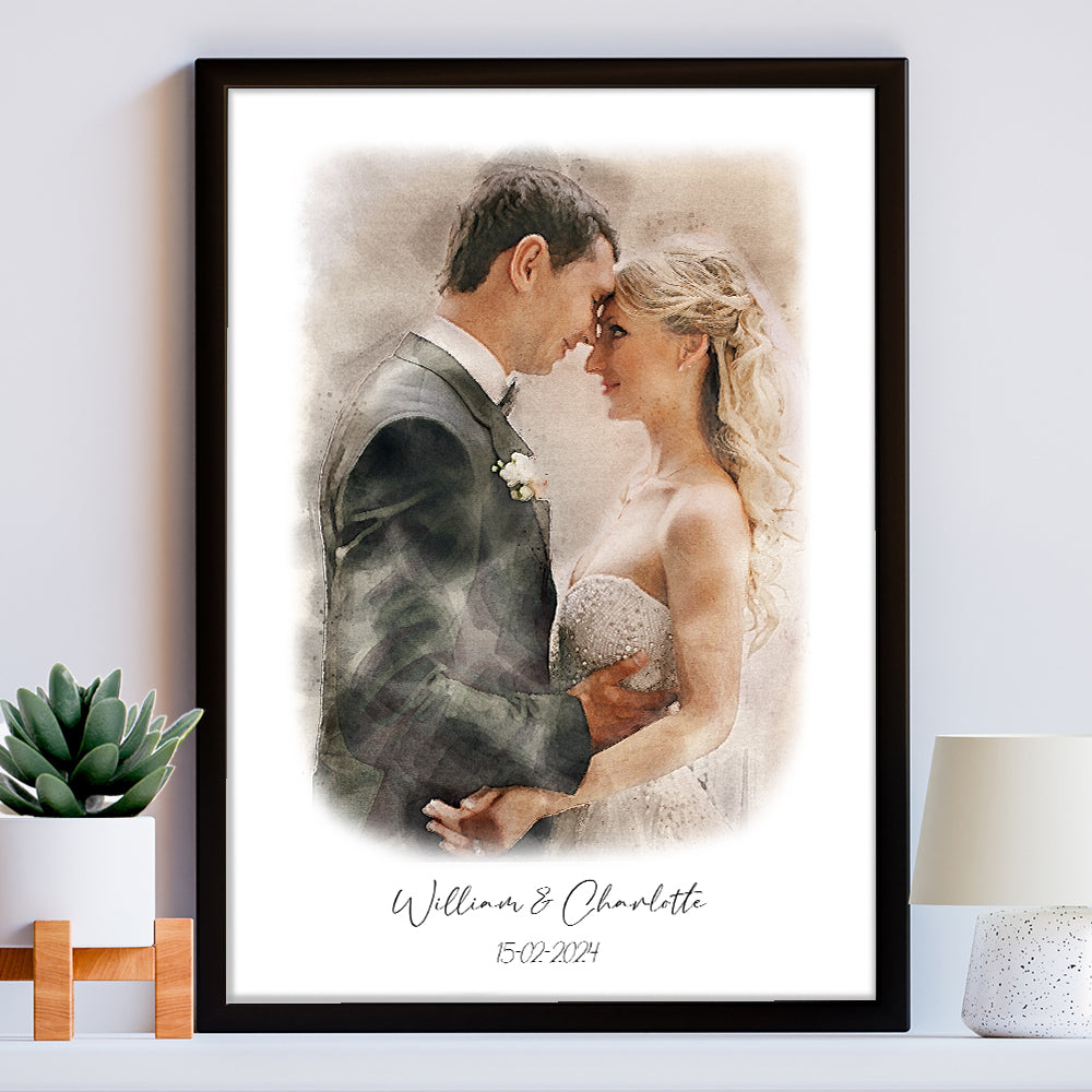 Upload your photo, and we'll transform it into a beautiful watercolor painting. You can personalize it with custom messages to add your unique touch.